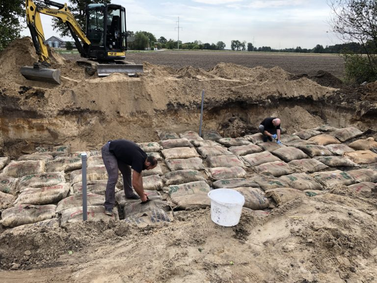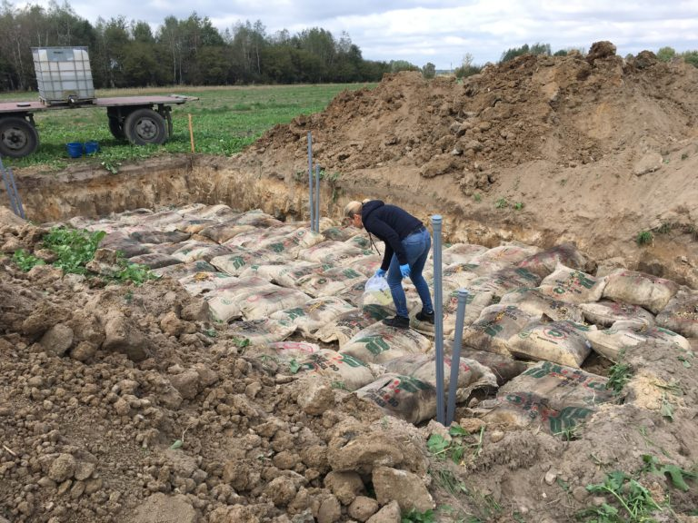 W celu zabezpieczenia płyty pod względem ryzyka wystąpienia długotrwałej suszy (długotrwałe przesuszenie złoża jest zagrożeniem dla wydajności złóż denitryfikacyjnych oraz obecnych tam mikroorganizmów) do złoża aplikuje się dodatkową pulę mikrobiotów (Ryc. 2), które w szybkim tempie przywracają jego wydajność i redukują stężenie azotanów nawet o 90%.